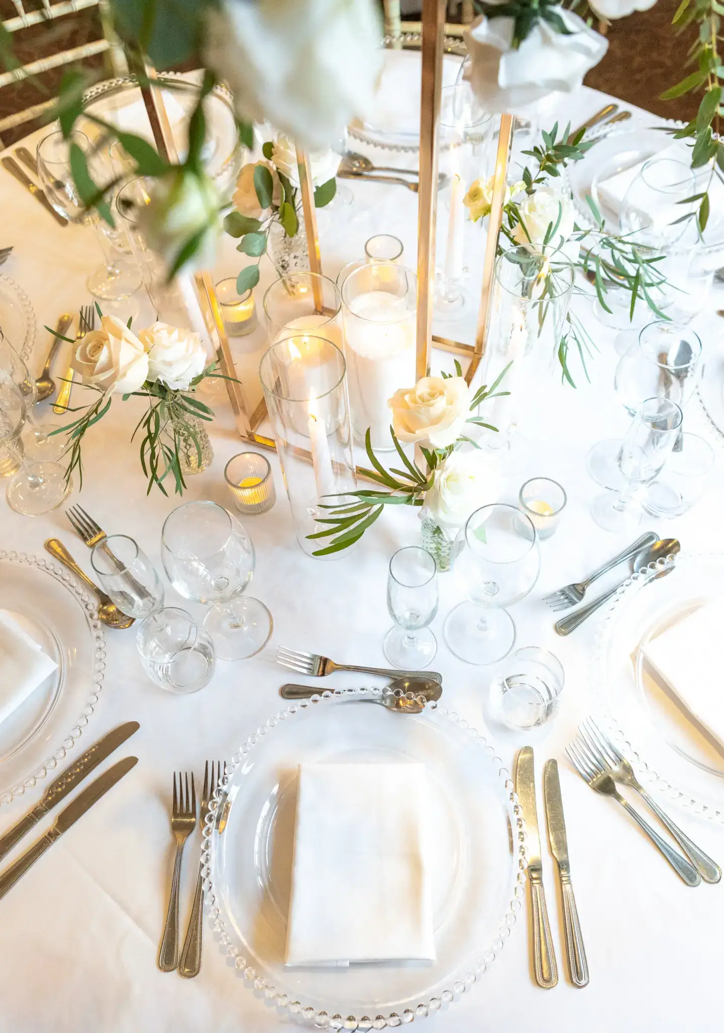 • Crisp white table linen